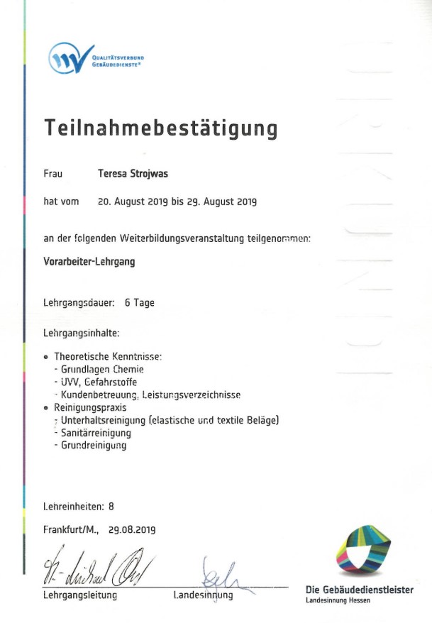 Die Firma Teresa-Strojwas-Gebäudereinigung wurde 2007 gegründet.